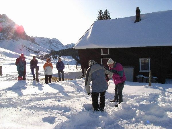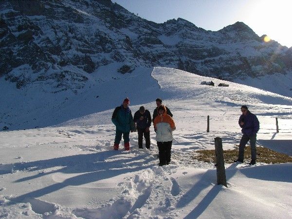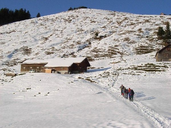 Auf der Schwägalp lagen maximum 30 cm Schnee. Darum wurde die Übung zu Fuss abgehalten. Da es schon längere Zeit nicht mehr geschneit hatte, waren alle Wanderwege gut getrampelt und begehbar.