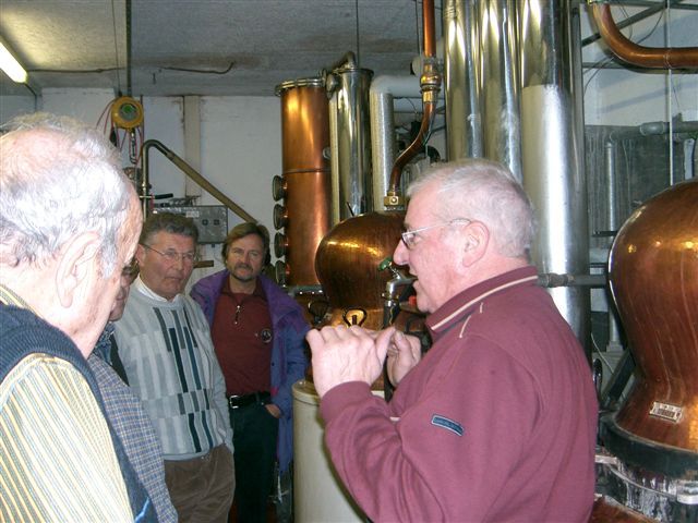 Auch an diesem Tag genossen wir die Würste mit dem feinen Kartoffelsalat. Wie gewohnt erklärte uns der Brennmeister Werner Ruff die Herstellung der Treberwürste, die ihren Ursprung am Bielersee haben.