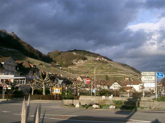 Nach dem Aussteigen in Biel, wo uns Sepp Eichmüller begrüsste, zogen wir uns schnellstens ins Café Seeland vis-à-vis vom Bahnhof zurück. Da sich die Situation draussen nicht merklich besserte, entschloss ich mich, auf Anraten von Sepp, um 11.52 Uhr mit der Gruppe nach Ligerz zu fahren und dann dem See entlang nach Twann zu spazieren. Dies war eine ausgezeichnete Idee, hatten wir doch dann den Wind im Rücken. Zugleich liessen Regen und Wind nach, sodass wir um 12.45 Uhr rechtzeitig bei unserem Ziel in Twann ankamen.