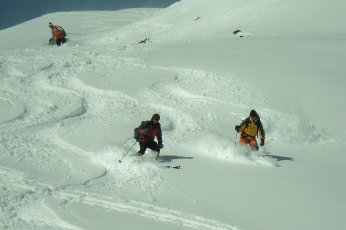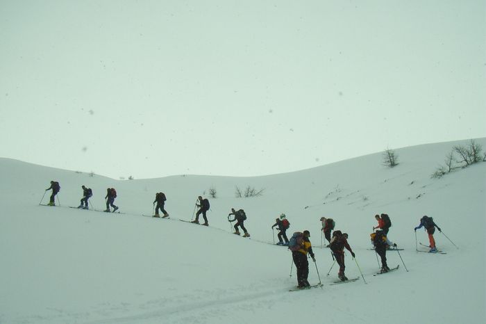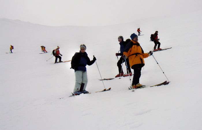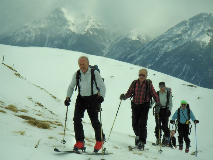 Auch wettermässig zogen wir dieses Jahr nicht den Trumpf Pur. Die Woche war geprägt von Schneetreiben, Wind, Wolken, Nebel und zu hohen Temperaturen. Irgendwie schaffte es die Gruppe 1 trotzdem, mehr als 6000 Höhenmeter zu machen. Sie bestieg die folgenden Gipfel: Piz Spadla, Piz Clünas, Piz Cotschen und Piz Champatsch. Für die Gruppe 2 gab es nur gerade einen einzigen Gipfel, den Piz Clünas. Die übrigen Touren endeten jeweils an einem bestimmten Punkt auf der Piste oder auf der Aufstiegsroute eines Berggipfels.